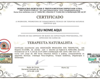 Os certificados emitidos pelo IRISMACRO possuem registro na ASSOCIAÇÃO BRASILEIRA DOS TERAPEUTAS, com o selo de validação da ABRATH. Esse selo é um símbolo de qualidade e reconhecimento oficial da entidade. Optar por um curso homologado oferece a vantagem de obter um certificado válido e reconhecido, permitindo que você solicite sua CARTEIRA DE TERAPEUTA PROFISSIONAL após a aprovação no curso.