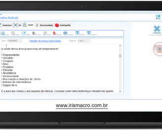 Para os profissionais auxiliares manterem sua rotina de trabalho e estudos organizados, o Núcleo de Tecnologia da Informação Irismacro desenvolveu o IRISDIAG PLUS, uma enciclopédia completa que funciona como um assistente de pesquisa pessoal. Com essa ferramenta, é possível coletar dados do cliente, analisar e organizar informações, além de inserir partes de pesquisa para cada cliente atendido.